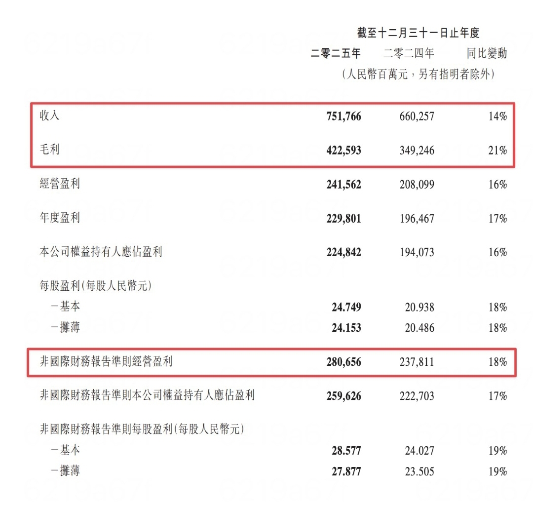 3月18日,腾讯控股(00700.HK)发布2025年第四季度及全年财报。财报显示,AI持续推动腾讯公司盈利结构优化:第四季度营收1943.7亿元,同比增长13%;Non-IFRS经营利润695.2亿元,同比增长17%。全年营收7517.7亿元,同比增长14%;Non-IFRS经营利润同比增长18%。