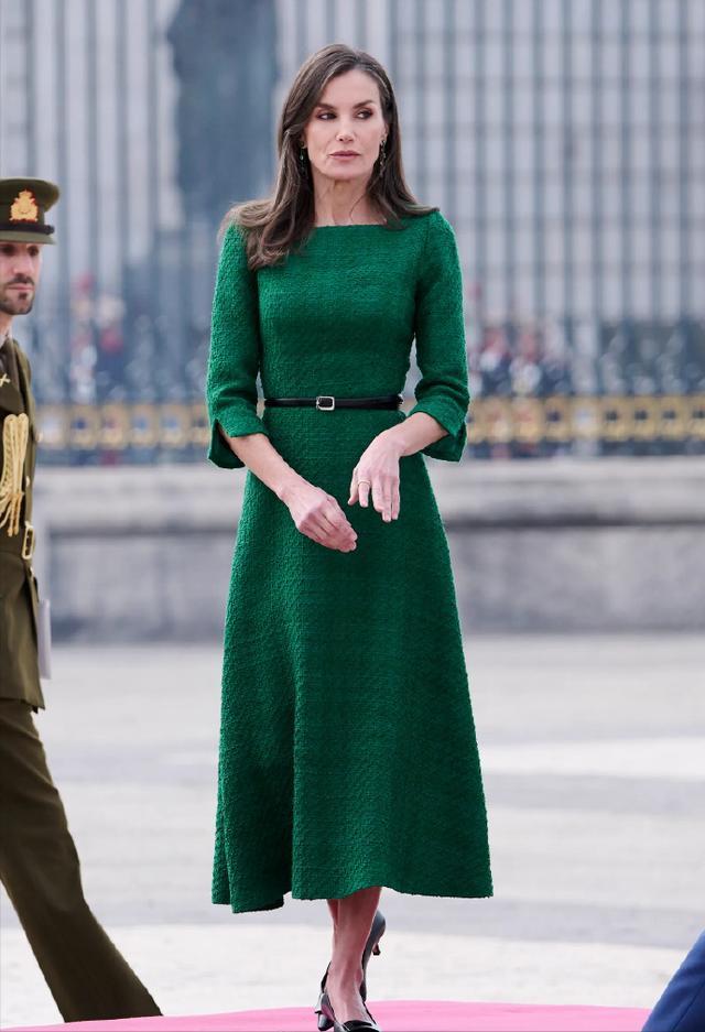 黑色套装裙,知性端庄,V领设计更显年轻时尚,也拉长了脖颈线条,让脸显得更加小巧。苏提达王后虽然已经47岁了,但是无论颜值,还是身材都依旧在线。