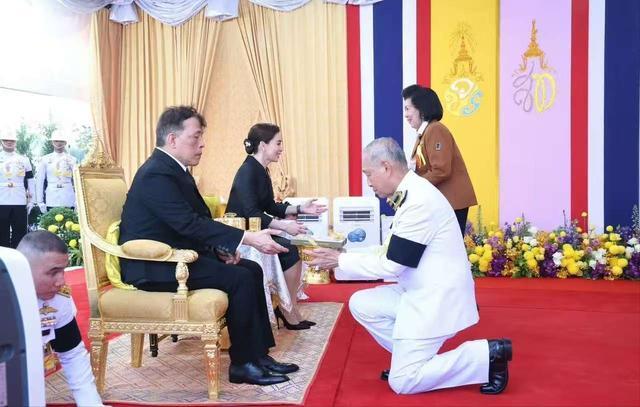 玛哈国王穿着黑色西装革履,一身造型和访问老挝时并没有什么不同。但是两鬓斑白,头发有些凌乱,少了笑容的他看起来和出访时有些不太一样。
