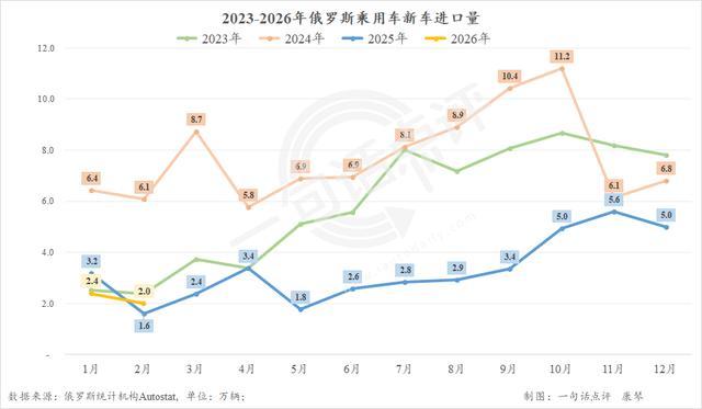 按照目前的走势来看,继2025年减少至51.7%之后,今年自主品牌在俄罗斯的份额应该还会继续减少,大概率会收窄到50%以内,甚至会回落至不足40%。